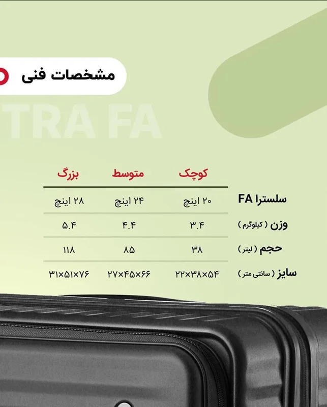 - سایز کوچک (۲۰ اینچ): 22*38*54 سانتی‌متر
