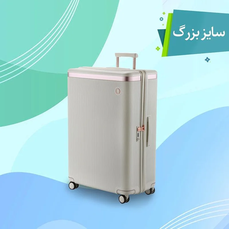 - سایز بزرگ (۲۸ اینچ): 29*52*77 سانتی‌متر، حجم 116 لیتر، وزن 4/9 کیلوگرم