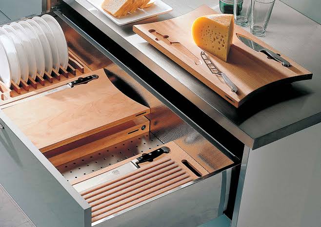 تختههای چوبی طبیعی علاوه بر کاربردی بودن، یک اکسسوری دکوری فوقالعاده محسوب میشوند. قرار دادن آنها کنار دیوار یا روی کانتر، حس گرما و لاکچری به آشپزخانه میدهد.