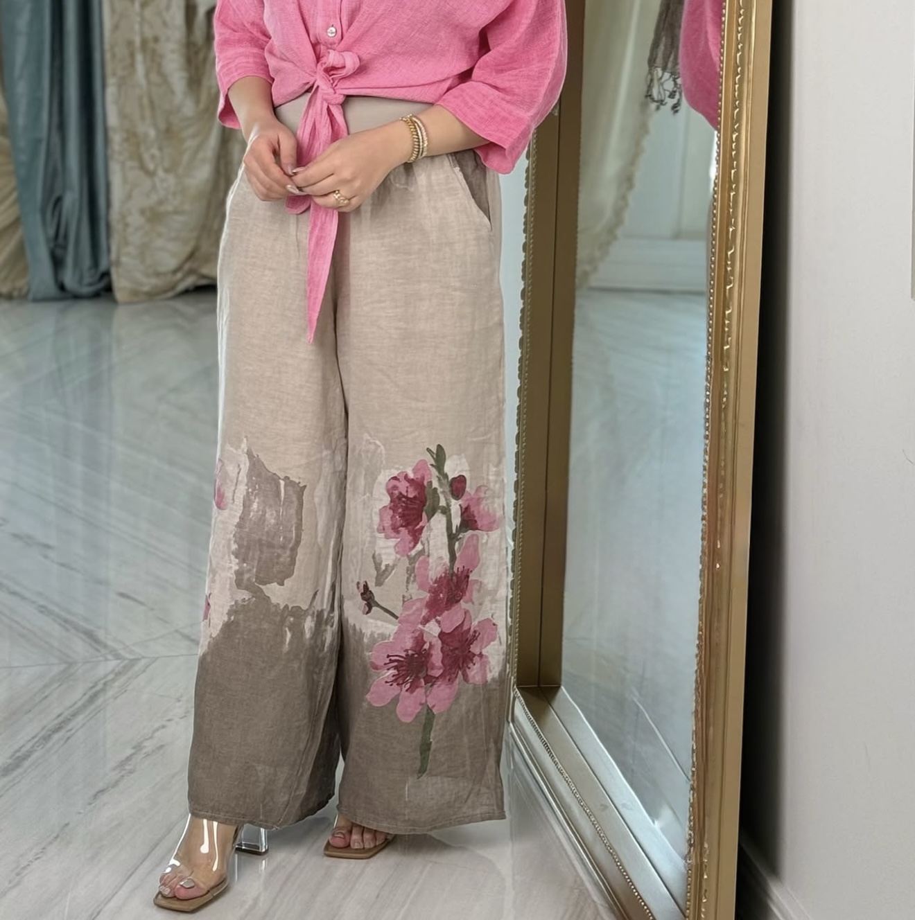شلوار فری سایز لینن ایتالیایی مناسب تا۴۸