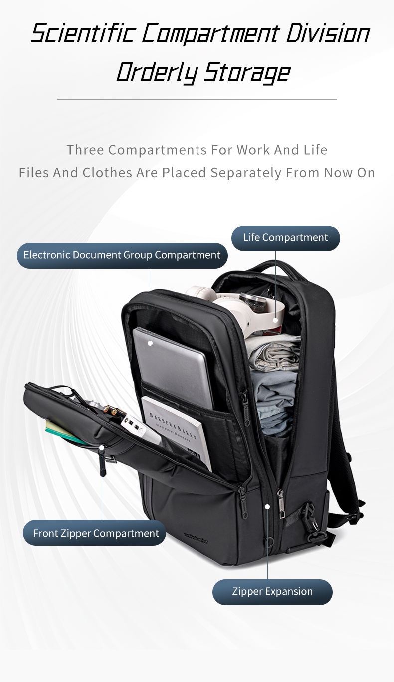 این کیف چرخدار دارای 4 محفظه زیپدار است که برای سازماندهی بهتر لوازم شما طراحی شدهاند. محفظه اصلی بهطور کامل باز میشود و قابلیت گسترش دارد. همچنین یک محفظه جداگانه برای لپتاپ، از دستگاه شما بهخوبی محافظت میکند.