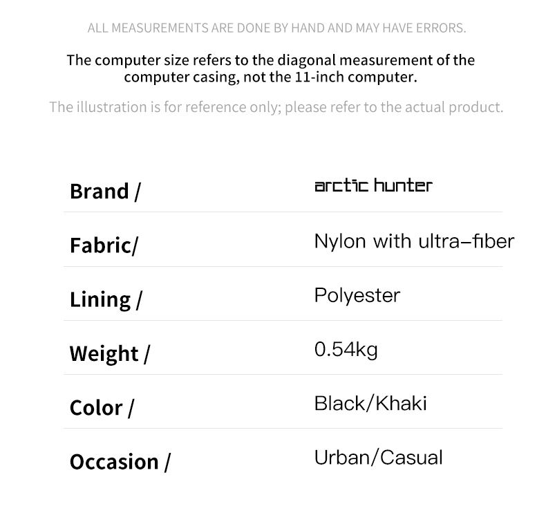 کیف Arctic Hunter از پارچه نایلونی کامپوزیت با چگالی بالا ساخته شده است که ویژگیهای ضدآب، ضدخش و مقاوم بودن را دارد. این کیف را میتوان در روزهای بارانی سبک استفاده کرد و به راحتی از وسایل شما محافظت میکند.