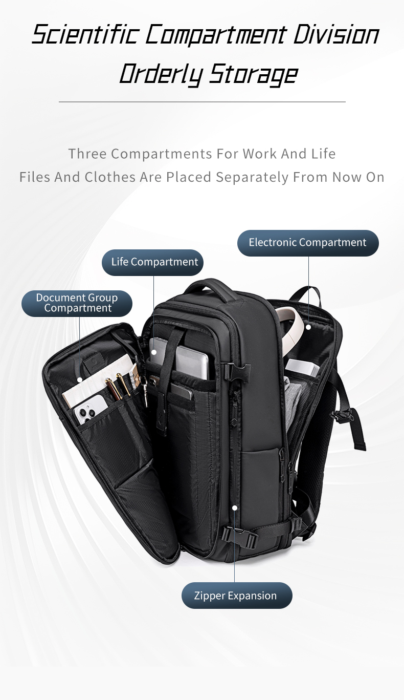 طراحی قابل گسترش: تنها در چند ثانیه، از یک کولهپشتی باریک روزمره به یک کیف بزرگ مسافرتی تبدیل میشود. قابلیت گسترش نوآورانه آن تا ۸ سانتیمتر عمق اضافه فراهم میکند تا بدون افزایش حجم، تمام وسایل مورد نیاز خود را جا دهید.
