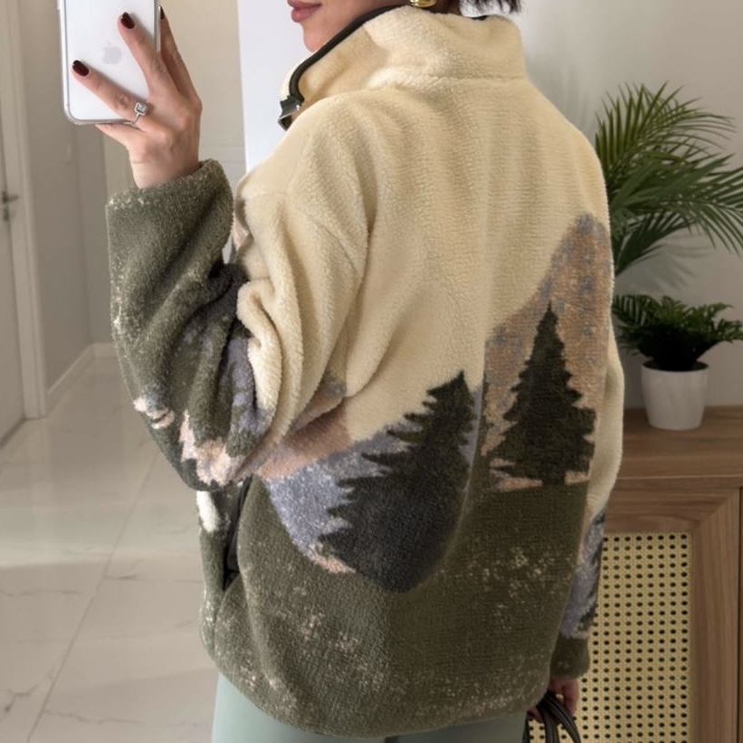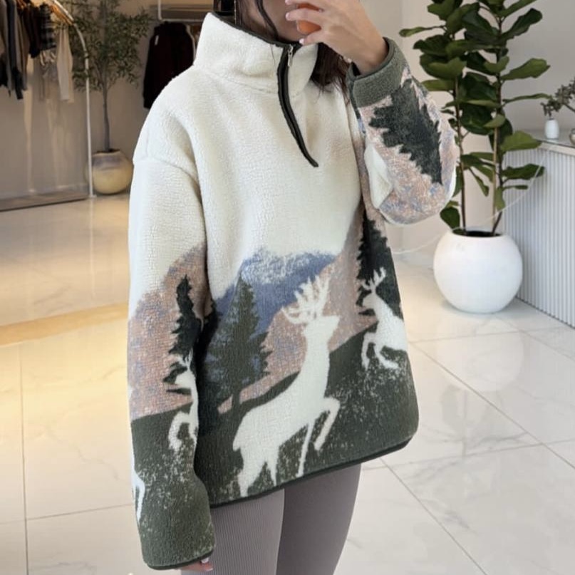 نیم زیپ تدی طرح گوزن سفید