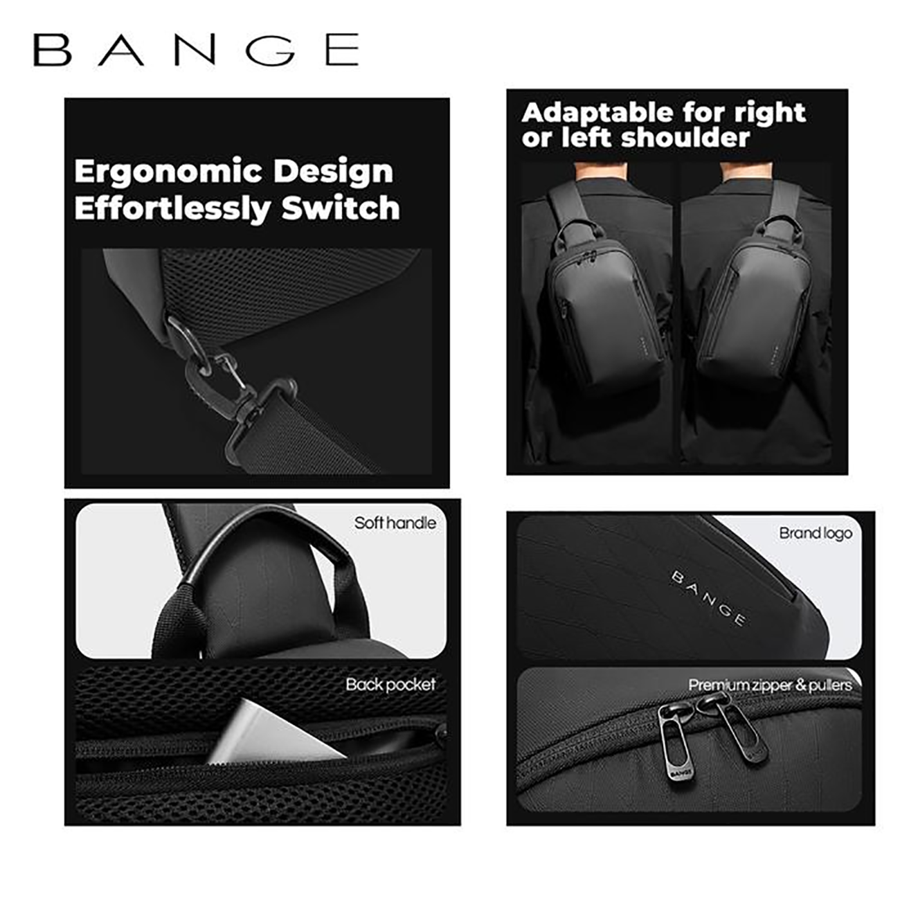 زیپ های مارک BANGE به کار رفته در کیف قفسه سینه بنج بسیار نرم، با دنده های فولادی و ضد زنگ بوده و با زبانه های بلند برای گرفتن راحت است. بادوام بوده و با استفاده مکرر همچنان روان و عالی مانند روز اول باز و بسته میشود.