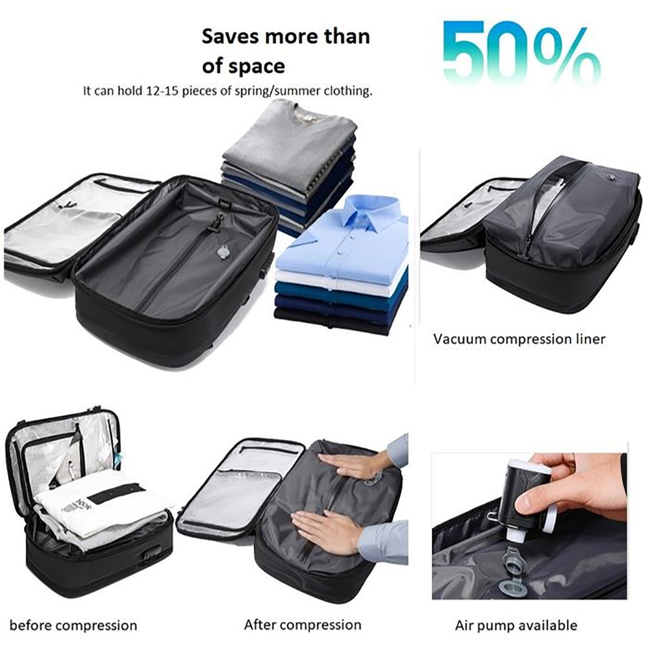 یکی از شگفتانگیزترین ویژگیهای این کوله مسافرتی، قابلیت افزایش حجم تا 45 لیتر با سیستم وکیوم است. یعنی در حالت عادی 30 لیتر فضا دارید، اما وقتی لباسها و وسایل بیشتری نیاز دارید، با یک فشردهسازی ساده ظرفیت بهطور چشمگیری افزایش مییابد. این ویژگی فوق العاده bange BG-7875-1 را مناسب برای سفرهای 2 تا 5روزه، دانشگاه یا حتی حمل تجهیزات کاری کرده است.